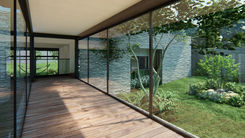 Entrada elevada en un nivel intermedio entre la nueva estructura y la existente.